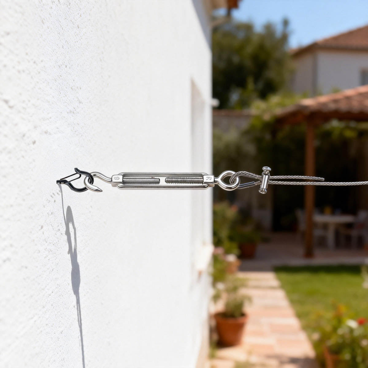 - Quick & Easy Attachment - Simplify your setup with the convenient hook and eye design. These turnbuckles are easy to attach and adjust, making them suitable for creating clean and professional-looking cable runs in any outdoor setting