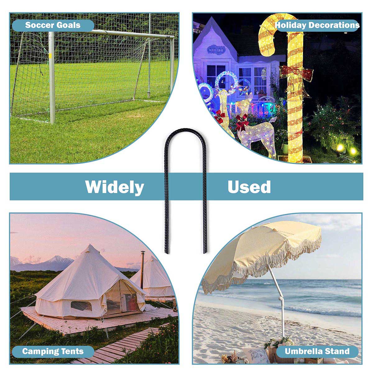 - Built to Last - Constructed by robust 5/16" rebar steel with black powder coating, these heavy-duty ground stakes boast premium rust and weather resistance, ensuring long-lasting outdoor use