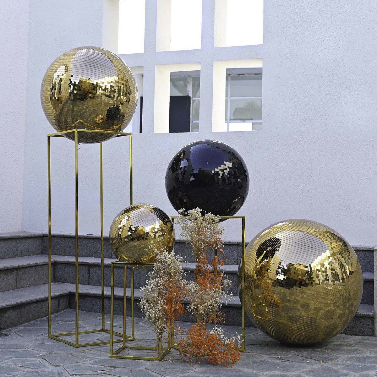 - Mirror Ball Options Diam: 23 5/8" (60 cm), 19 11/16" (50 cm), 15 3/4" (40cm), 11 13/16" (30cm), 7" (18 cm)/li>