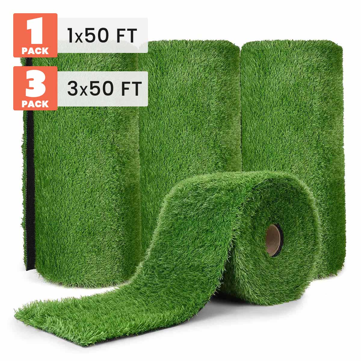 - 10x50ft Outdoor grass rug (3x 3'x50' + 1x 1'x50' Artificial Grass Mats) - 1x Manual
