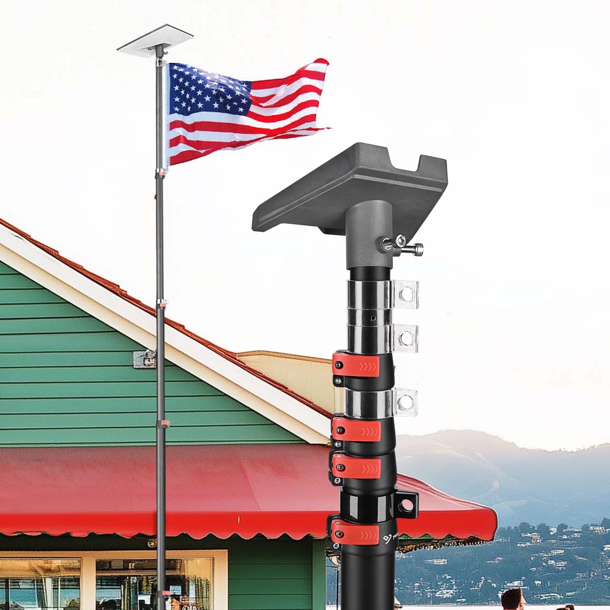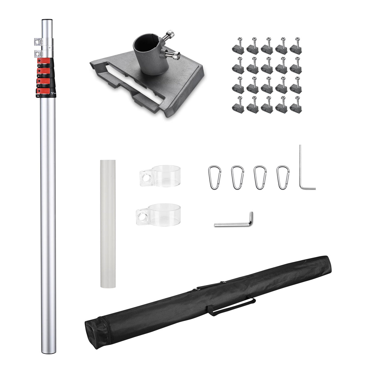 Starlink Gen 3 Flagpole Mounting Kit includes a 14ft telescopic flagpole, a pole mount adapter and a carry bag, providing hassle-free mounting for your Starlink dish on the backyard, garden, RVs, campers, or tailgate parties to ensure optimal signal reception.