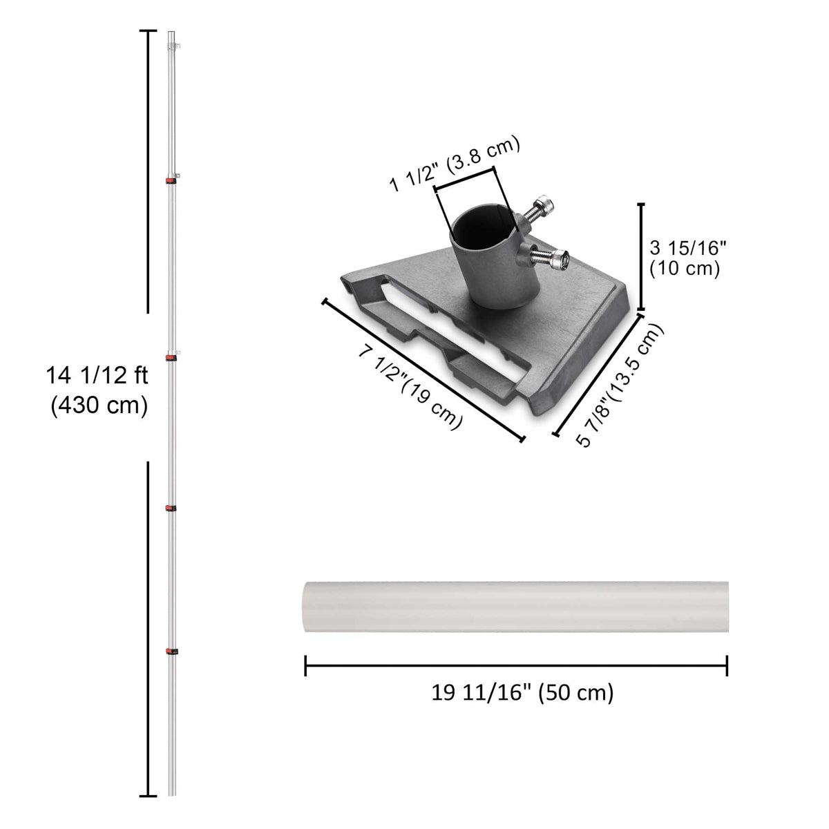 - Adjustable Height: 3 5/6 ft to 14 1/12 ft (118 to 430 cm)