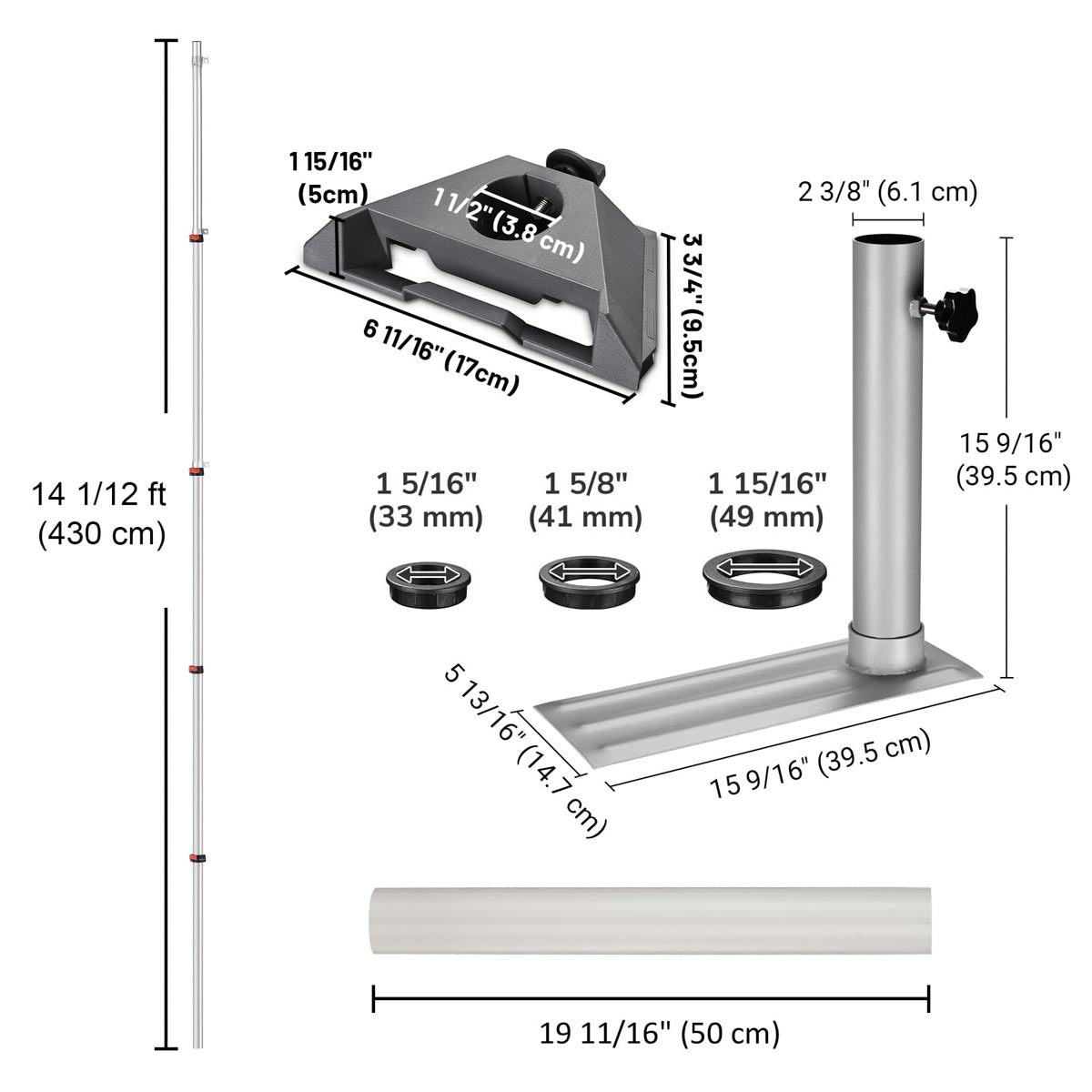 - 14ft Model: Extended: 14ft | Collapsed: ~3.8ft | Pole Dia.: 2.2" | Net Weight: 5.1 lbs