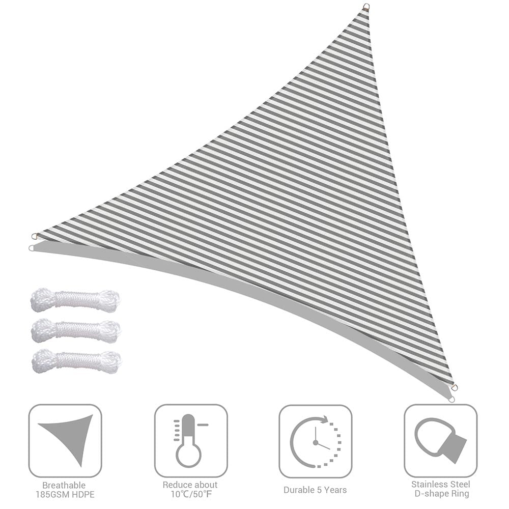 - Triple stitched seam reinforces the edge to prevent fraying and ripping; Curved triangle shape helps the sail to keep tight; Heavy-duty nylon ropes included; 5-year warranty for quality issue