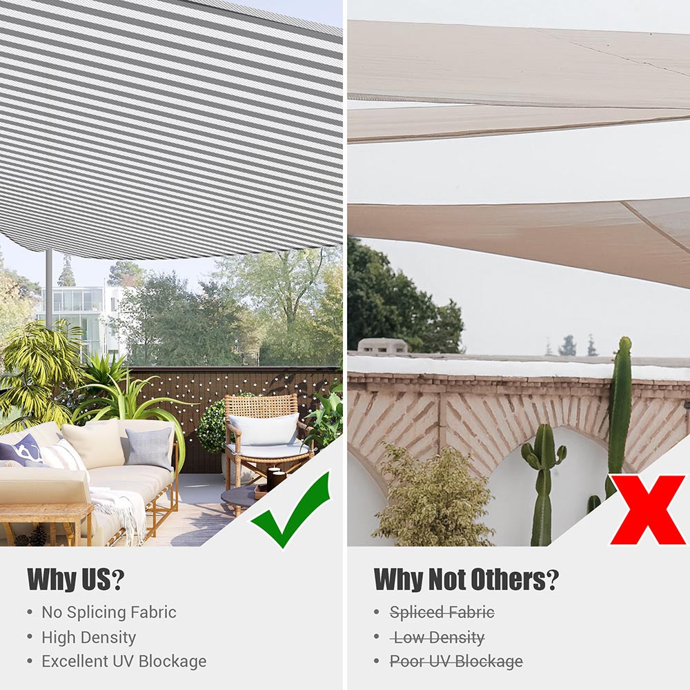 We provide you with this 28ft Triangle Sun Shade Sail, it can let your courtyard, terrace or swimming pool be decorated. Also it can block sunlight while allowing breeze to pass through, creating a cool and comfortable environment, allowing you to rest outdoors and 97% UV protection.