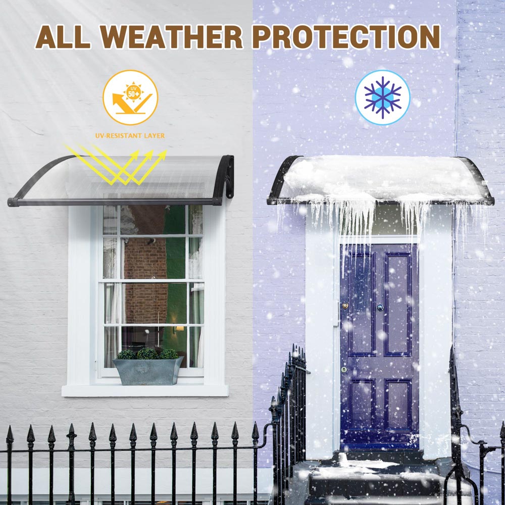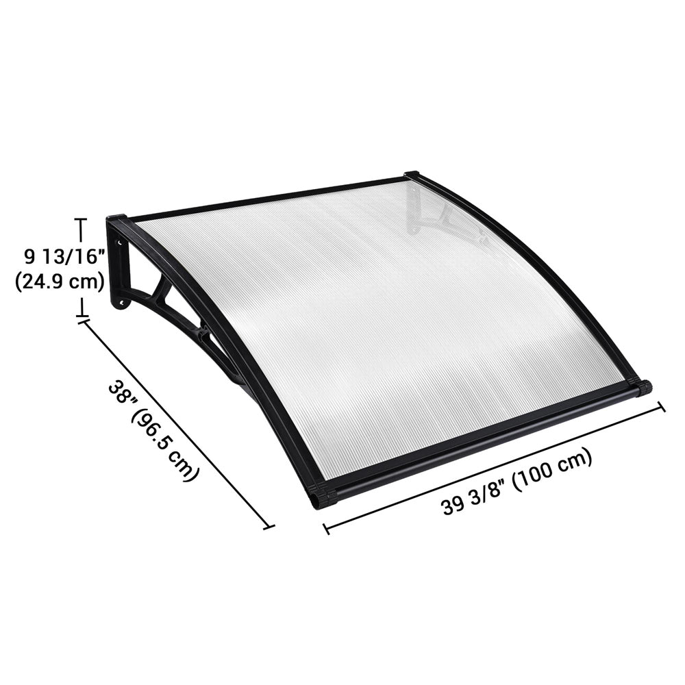 This 3' Patio Awning is made with One-piece hollow polycarbonate sheet with UV protection and strong plastic alloy brackets that can protect your entry doorway or windows. Polycarbonate sheets can easily be trimmed to your required width. This awning has good weather resistance, safe, easy and ready to install.
