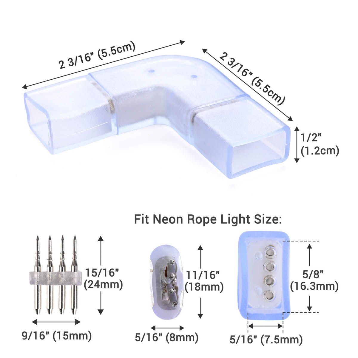 - Conquer Any Lighting Terrain - I-shape for straight runs, T-shape for splits ways, L type for 90° corners, and Wire-shape rope to rope jumper for splice different neon rope lights together - your layout, your rules
