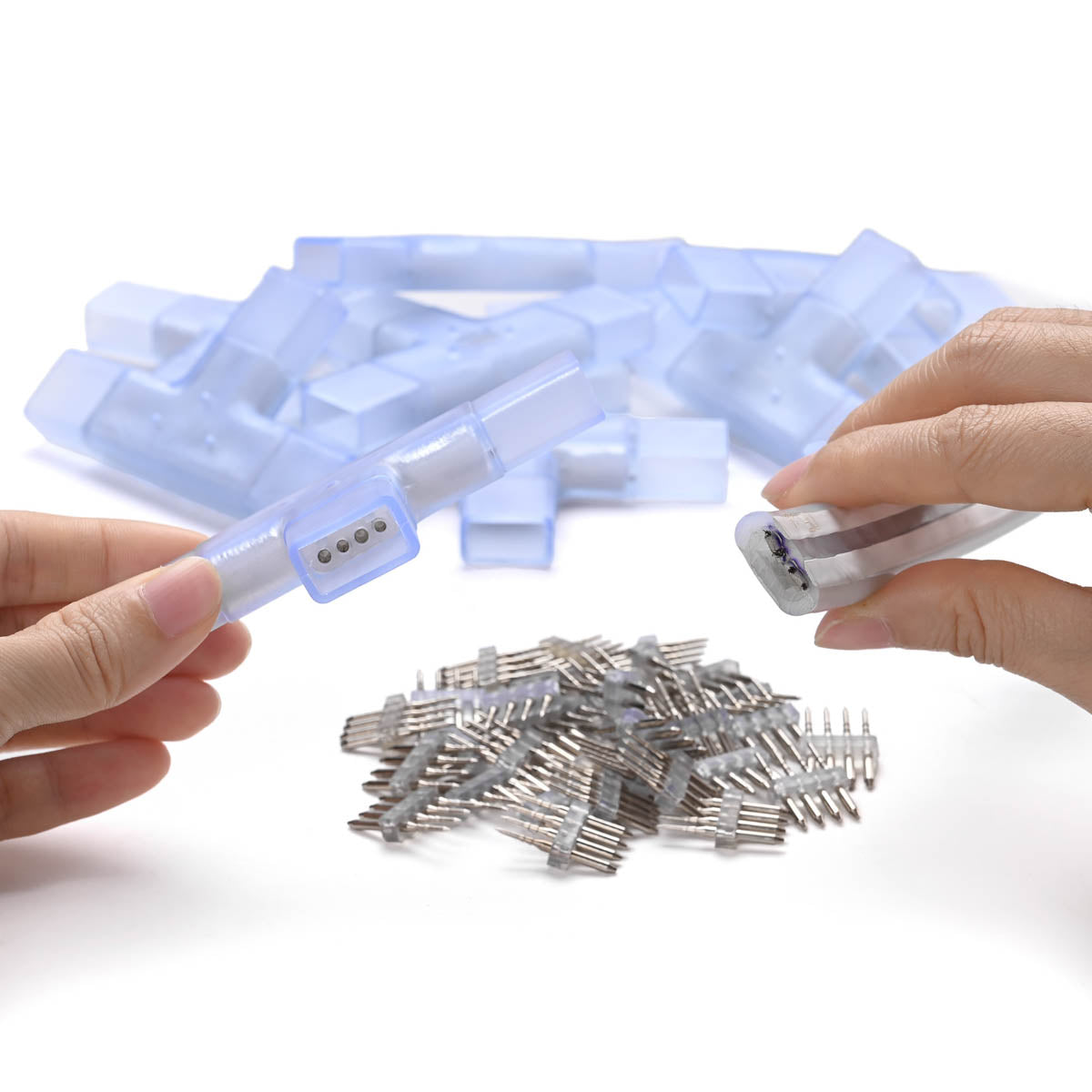 DIY Splice Connectors with Pins Waterproof Splicing! Clear PVC housing endure rain, dust, humidity! I-shape for straight, T-shape for split, L-shape for 90° corners, Wire-shape designed to navigate around structural obstacles. Can choose different shapes according to the situation.