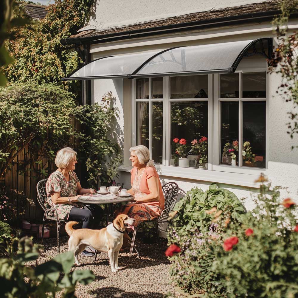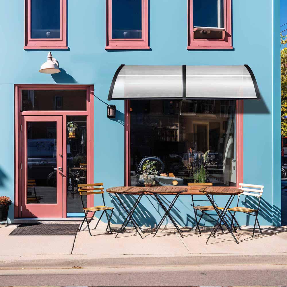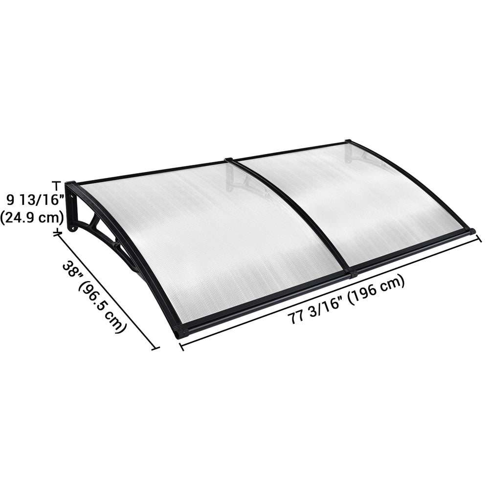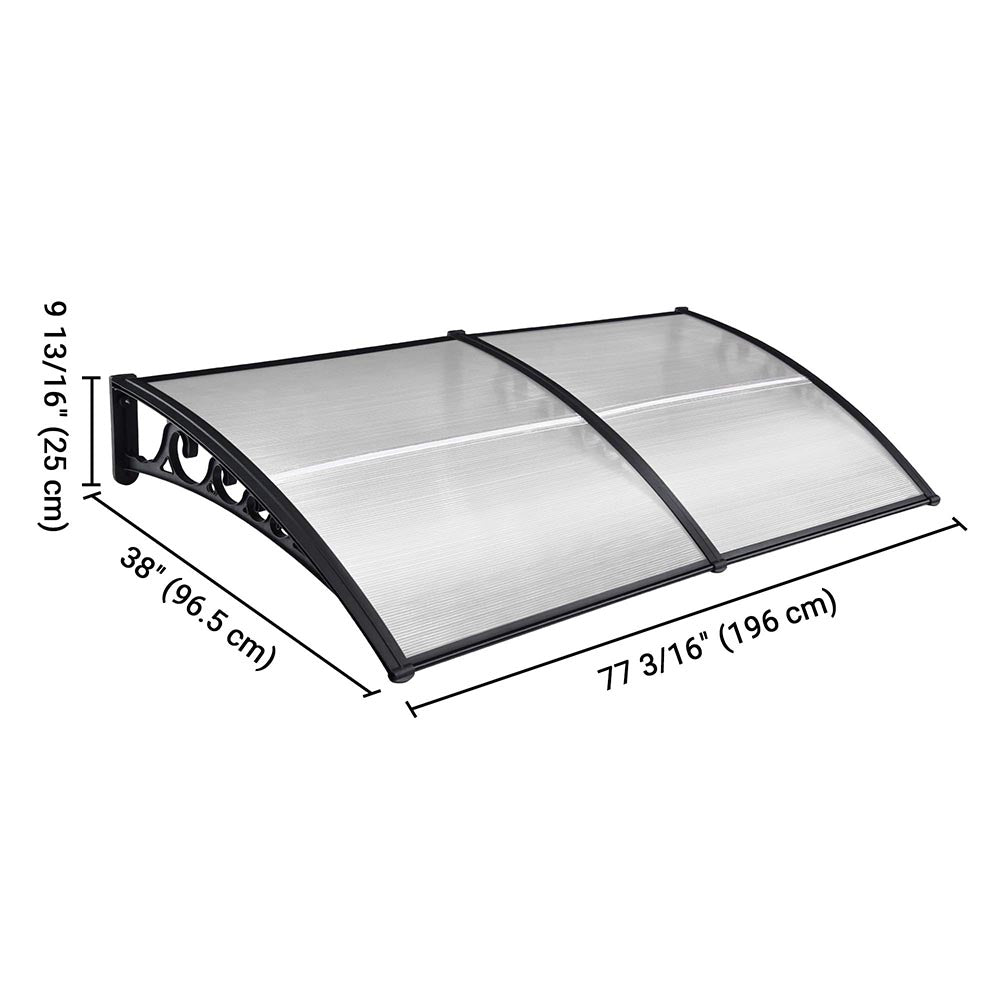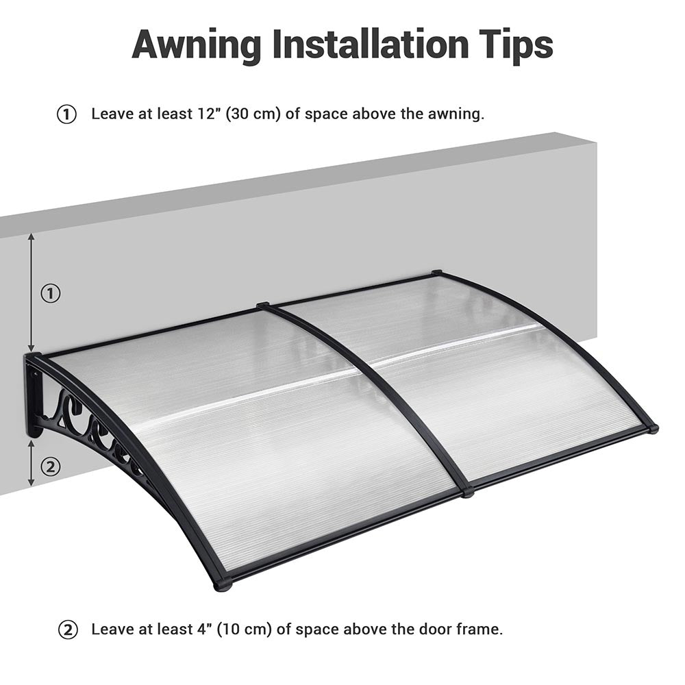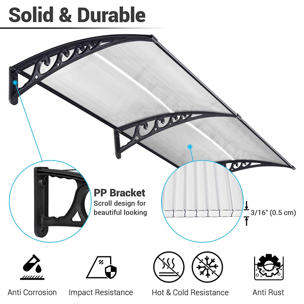 DIY Awning is made with 2 complete clear hollow polycarbonate sheet with UV protection and strong plastic alloy brackets that can protect your entry doorway or windows. Polycarbonate sheets can easily be trimmed to your required width. This awning has good weather resistance, safe, easy and ready to install.