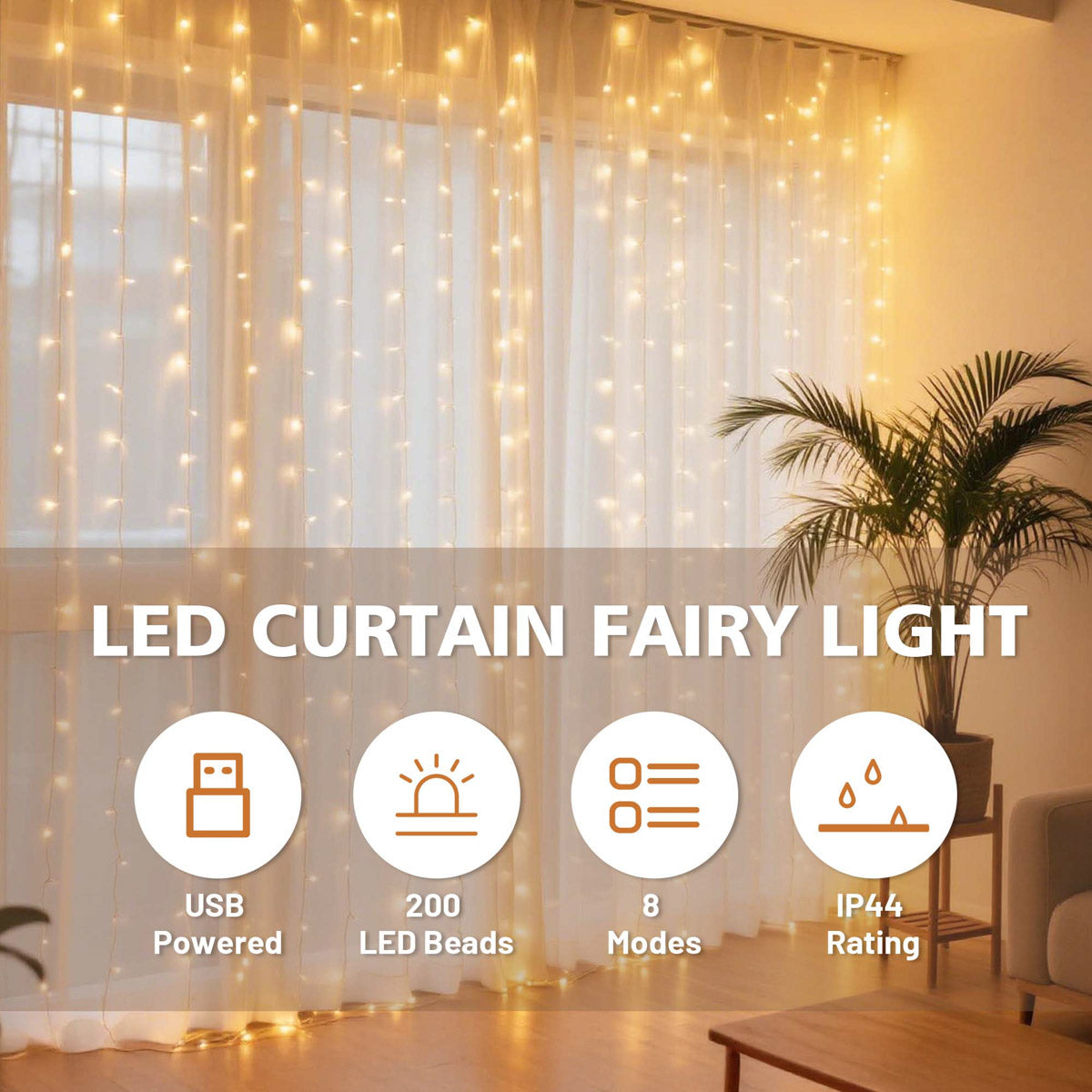 - Enchanting 6.6x7.2 Ft LED Light Curtain - 10 cascading warm white light strings create a dreamy, cozy glow for any space.