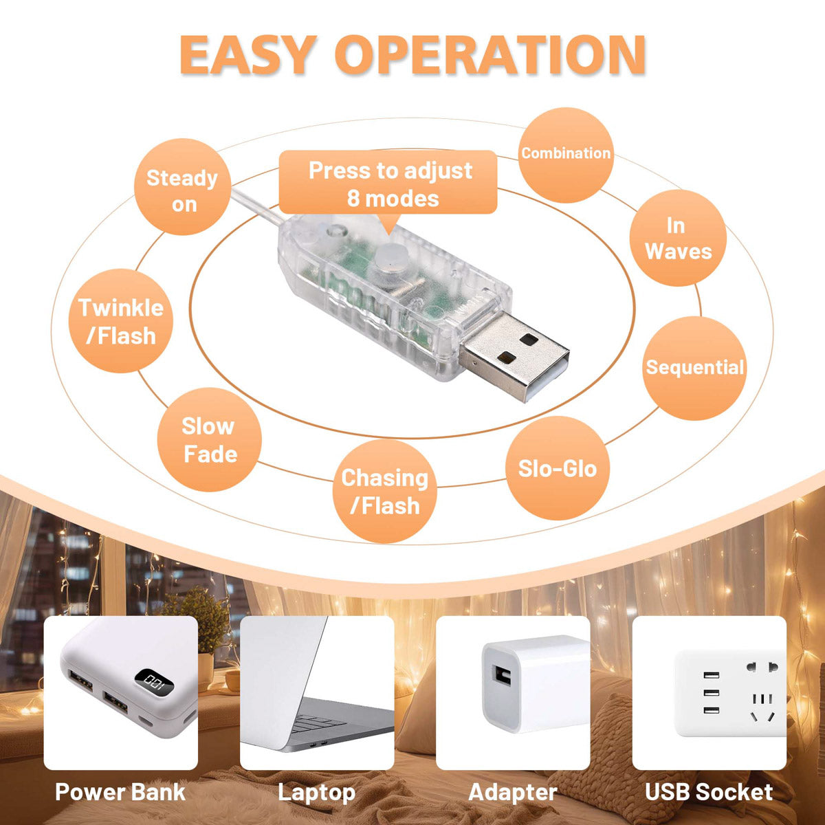 - 8 Magical Lighting Modes - Set the perfect mood with a click: Twinkle, Fade, Chasing/Flash, Wave, Sequential, Slo-Glo, and more.