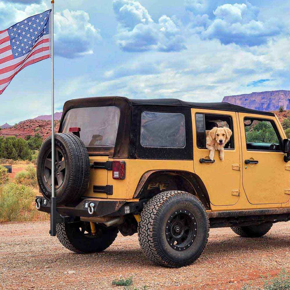 DIY Hitch Flag Pole Holder for 1 9/16" Receivers & 1"-2" Poles, which can be easily installed to jeep, RV, SUV, truck, camper, food cart and any vehicle.