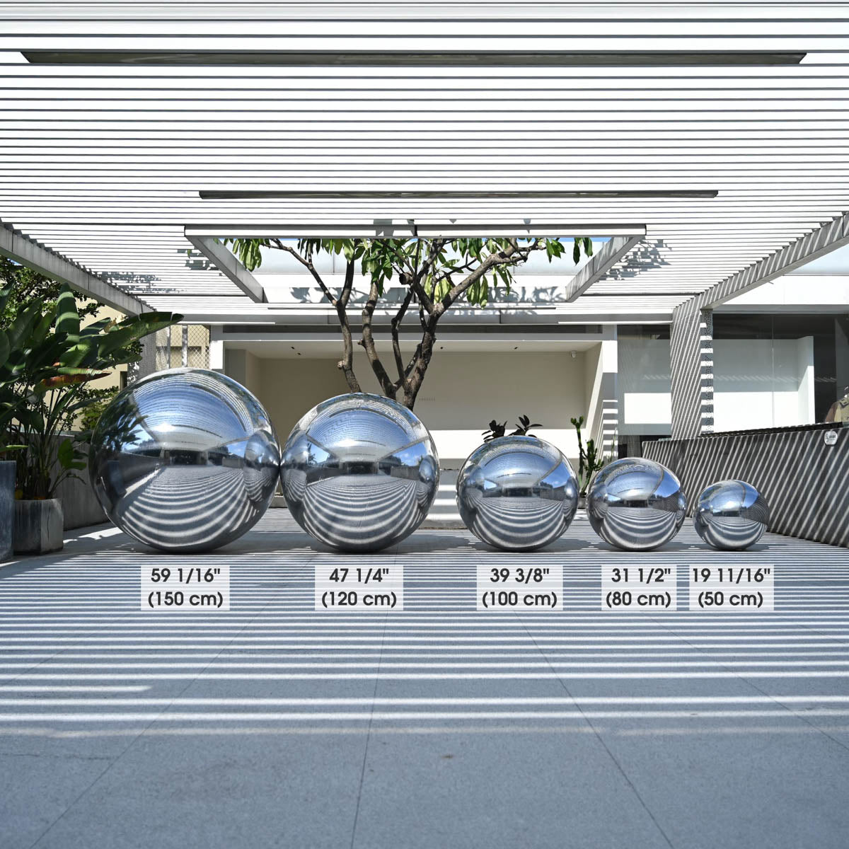 - Mirror Ball Diameter: 59 1/16", 47 1/4", 39 3/8", 31 1/2", 19 11/16" (150 cm, 120 cm, 100 cm, 80 cm, 50cm)