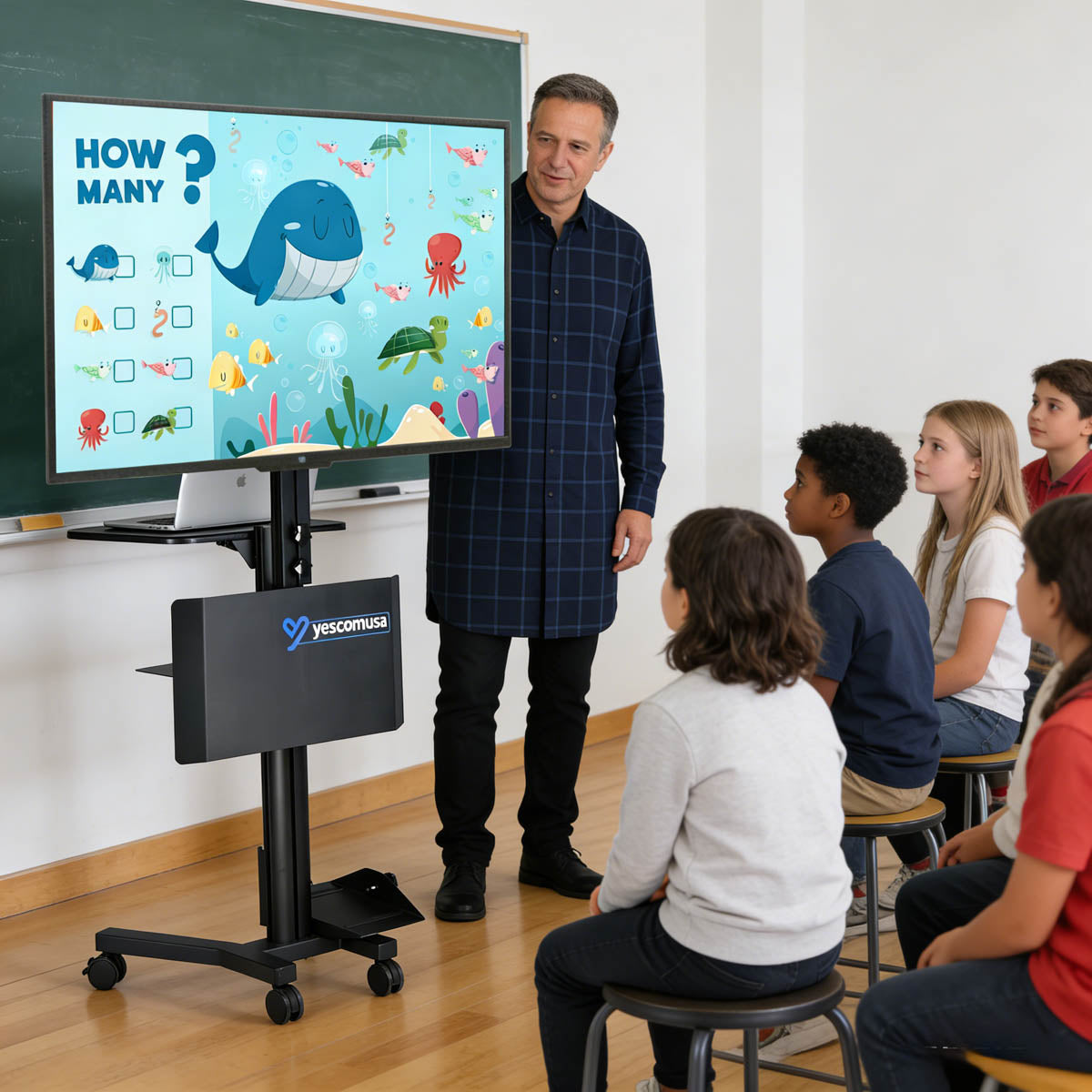 - Effortlessly adjust the stand's height from 46" to 68" to achieve an ideal viewing angle in any room or for any audience
