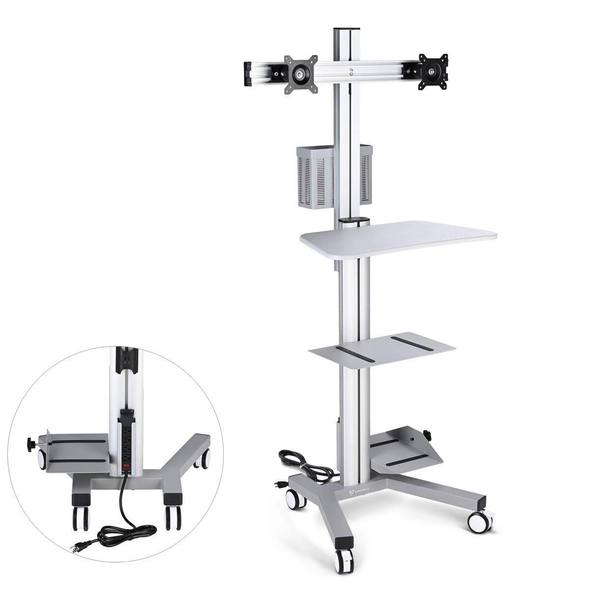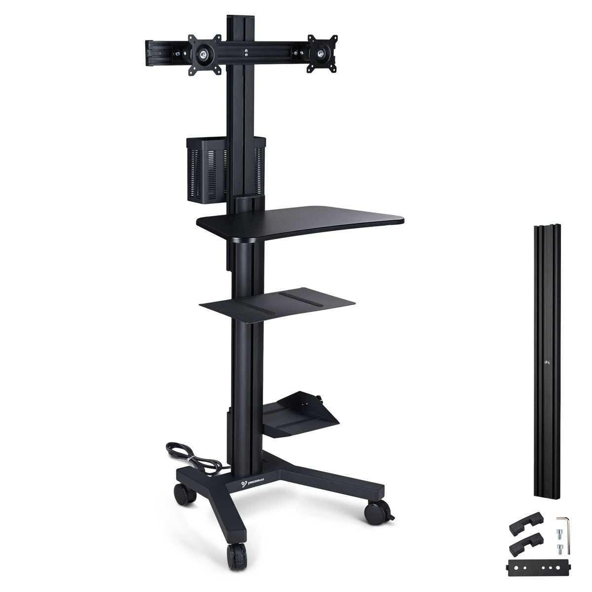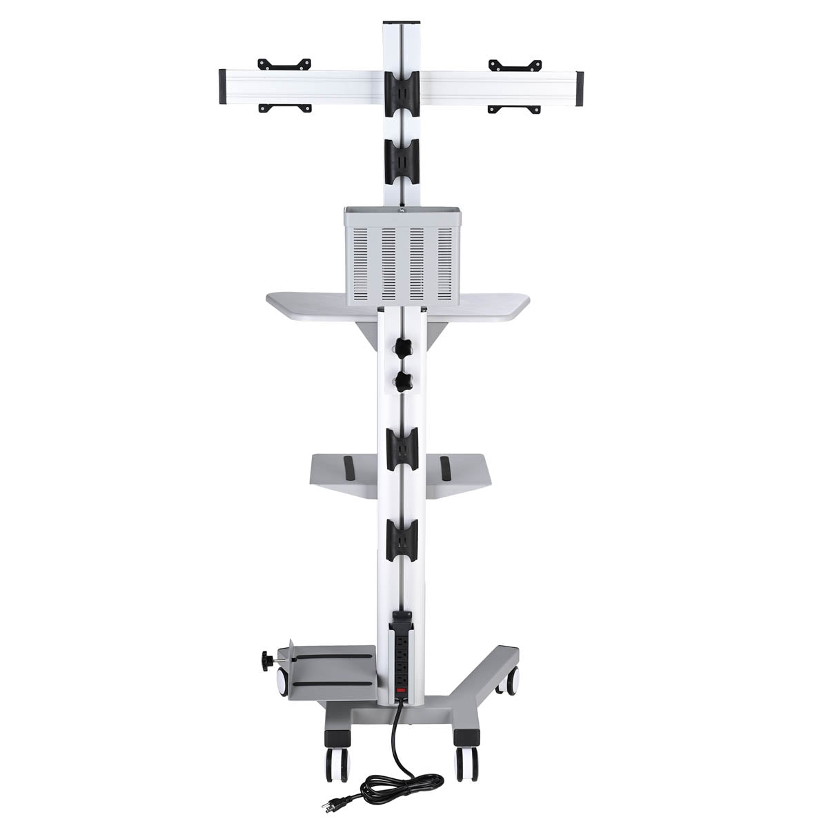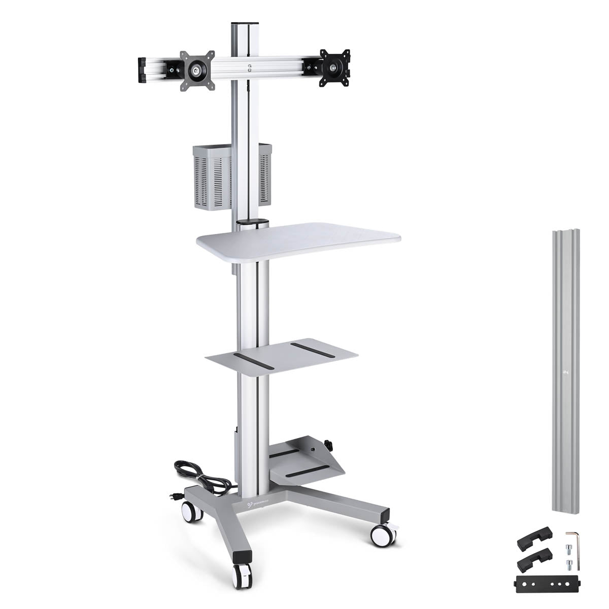 - 36" Crossbar: Enables horizontal mounting of two 32" monitors side by side on the cart (mobile computer cart features a 27 9/16" crossbar as standard) - VESA mount comes with an adjustable ball head for 45° monitor tilt & 360° swivel for a comfortable viewing angle.
