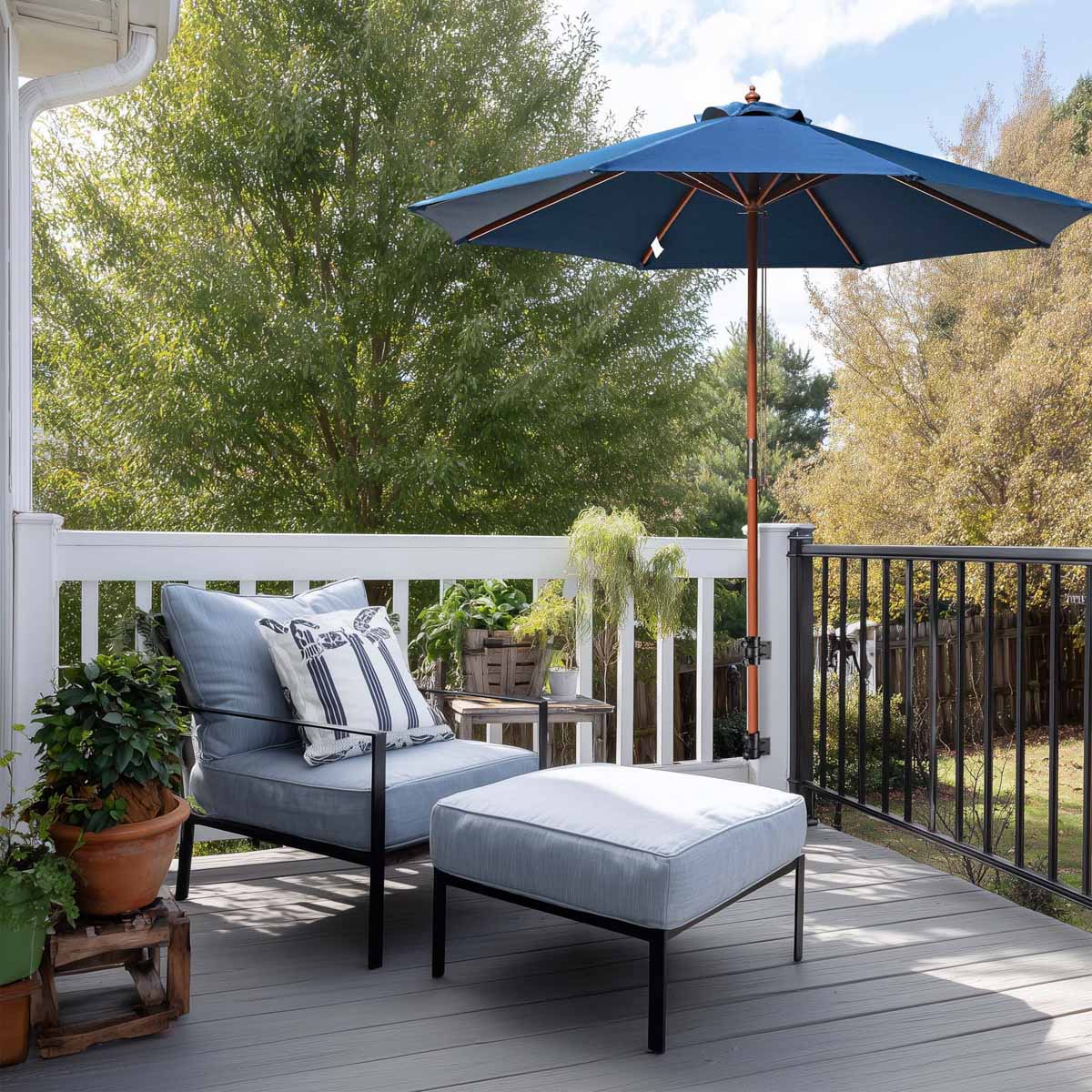 - Heavy-duty Steel Construction - Crafted by sturdy powder-coated steel for rust resistance, this umbrella holder for deck railing is tough enough to withstand outdoor elements, ensuring long-lasting deck shade solutions