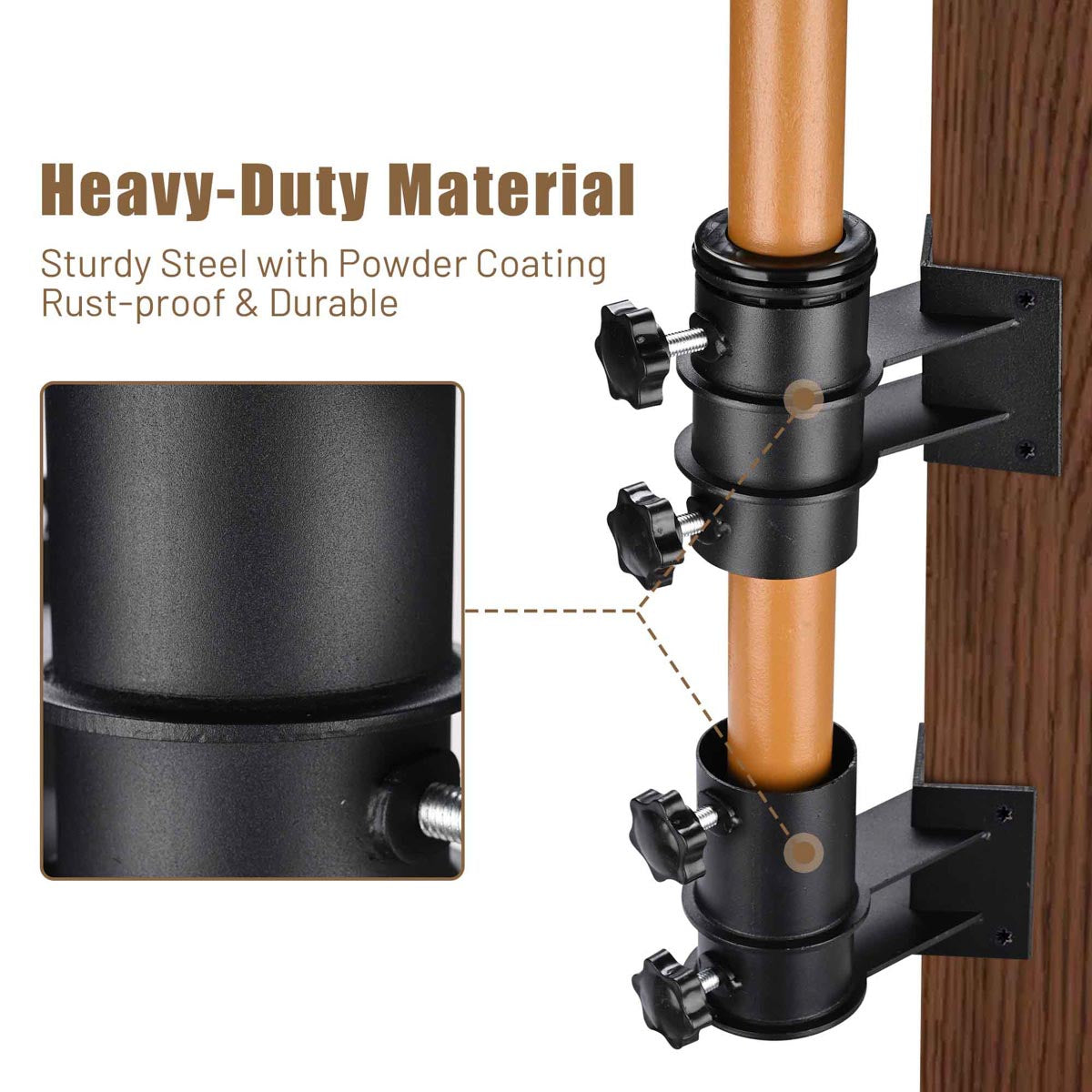 - Easy to Install - Designed for simple installation, just fix the umbrella holder brackets on the railing or the wall with screws, insert the umbrella pole, and then tighten the knobs to fix the pole