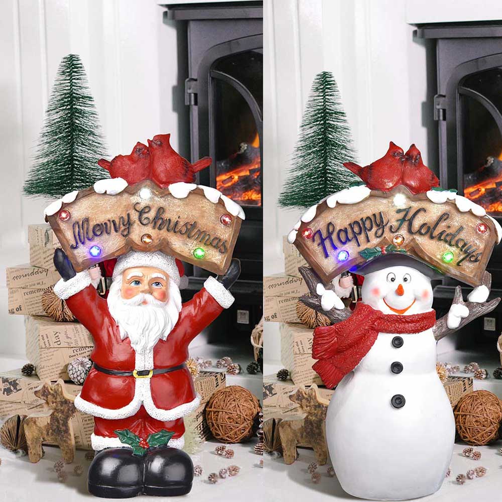 - Tabletop Christmas Decoration - 7"x4"x12" Santa Claus and Snowman Light features beautifully hand-painted Santa or Snowman figurine holding Merry Christmas sign with LEDs overhead, one button to light up and fill your room with Christmas miracle, perfect decoration to boost your holiday spirits, also ideal gift for your friends & family