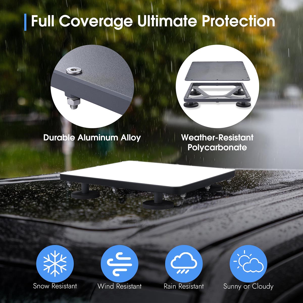 - Full Coverage Ultimate Protection - Constructed by sturdy aluminum alloy frame and rugged PC panel, this mount is designed to withstand rain, hail, and other harsh outdoor elements, keeping your Starlink Mini safe and secure